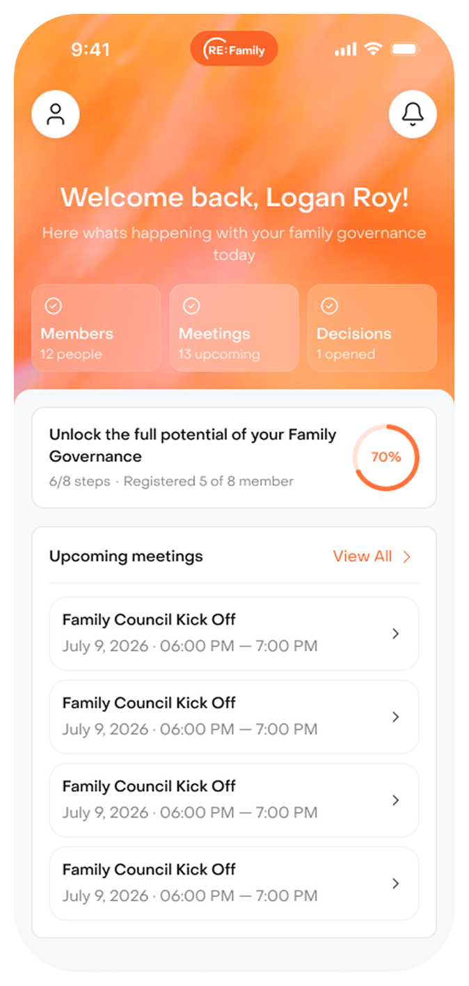 Most families are up and running within a few days. You can begin with a simple structure — family tree, mission, and first meeting — and expand over time.